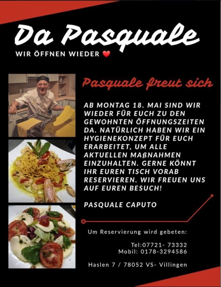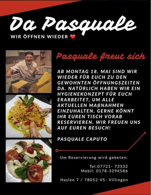 Unser Restaurant „Da Pasquale“ ist wieder zu den gewöhnten